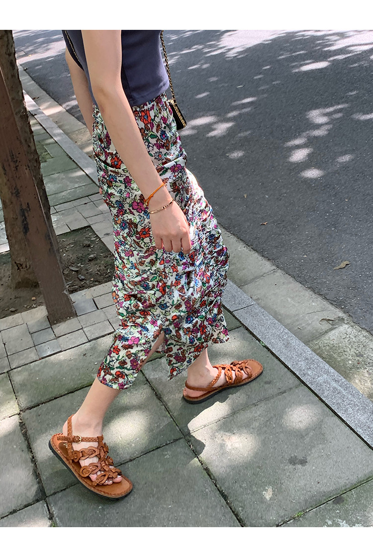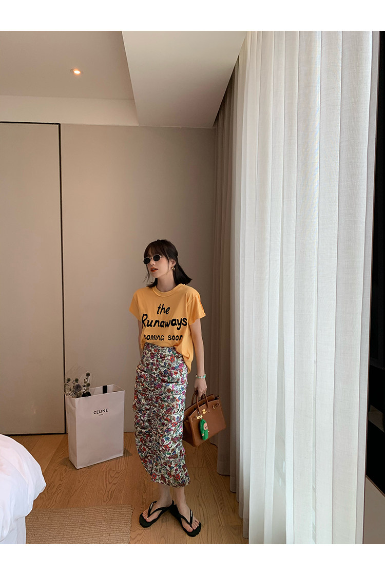 2021 新款.設計風莫奈花園印花抽褶半身裙《設計師款100%保證品質佳》