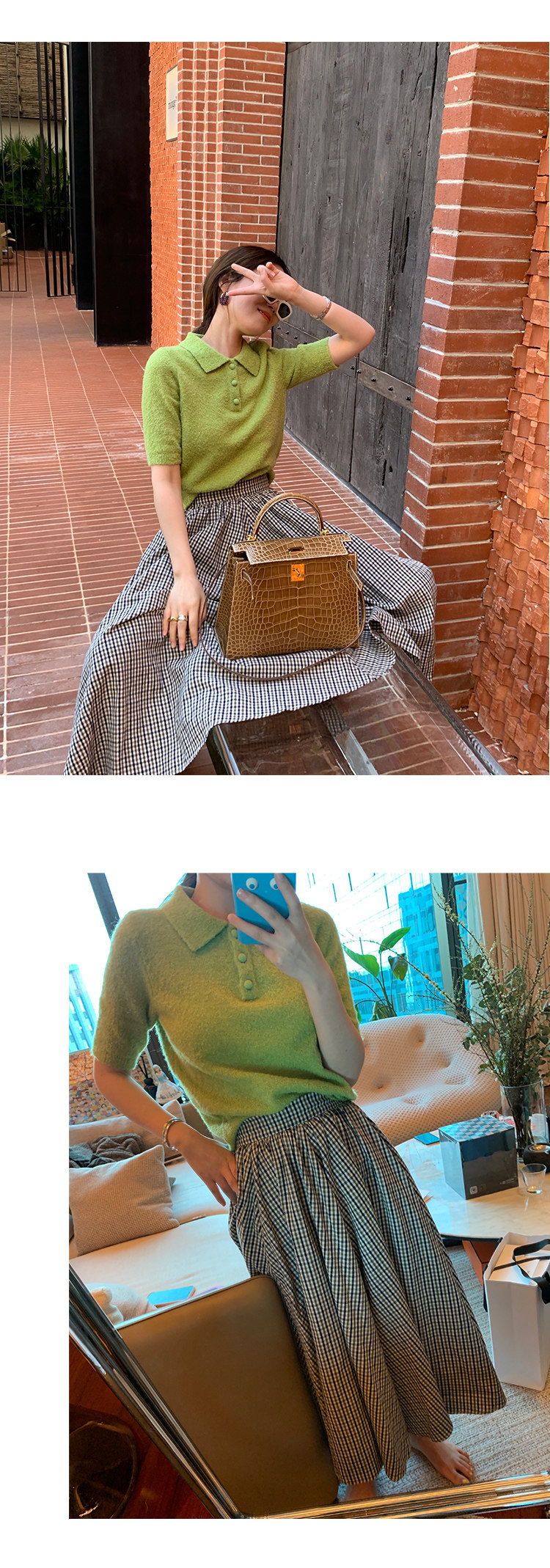 整套為經典的格紋色系 配上一點點細節的點綴
