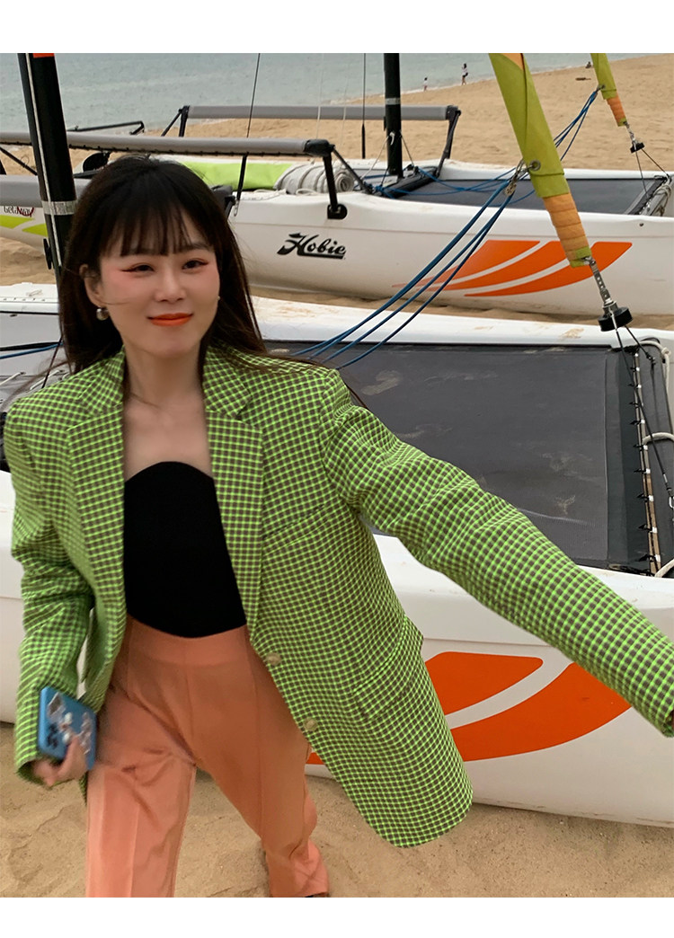 後背裝有YKK隱拉鏈 收腰包身顯曲線