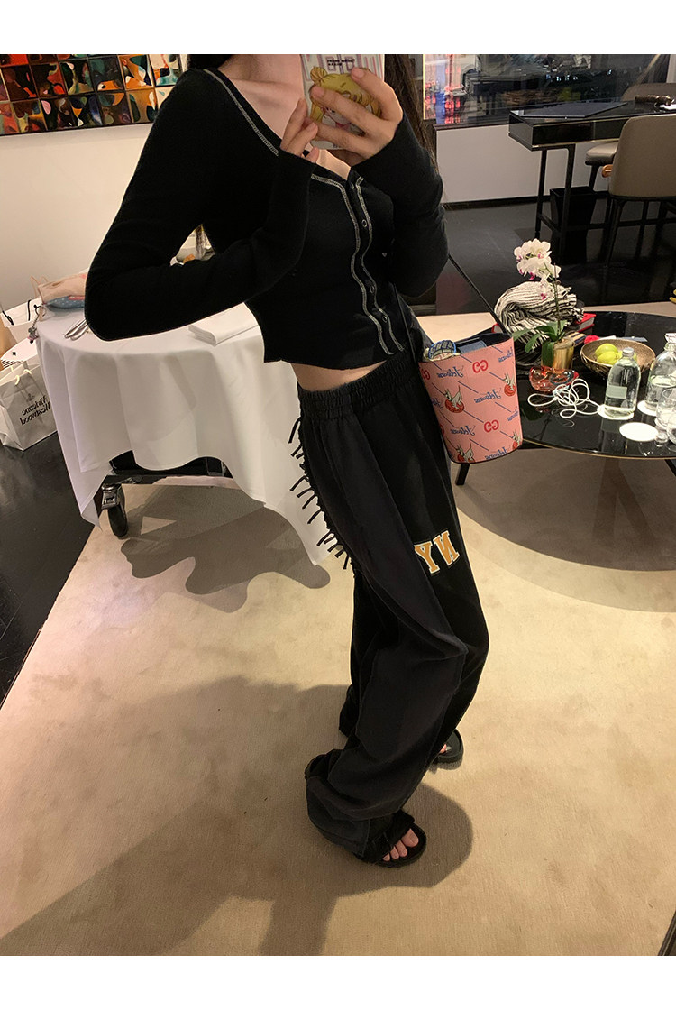 腳口是不規則裁剪的弧度 整條褲子都很有yong style