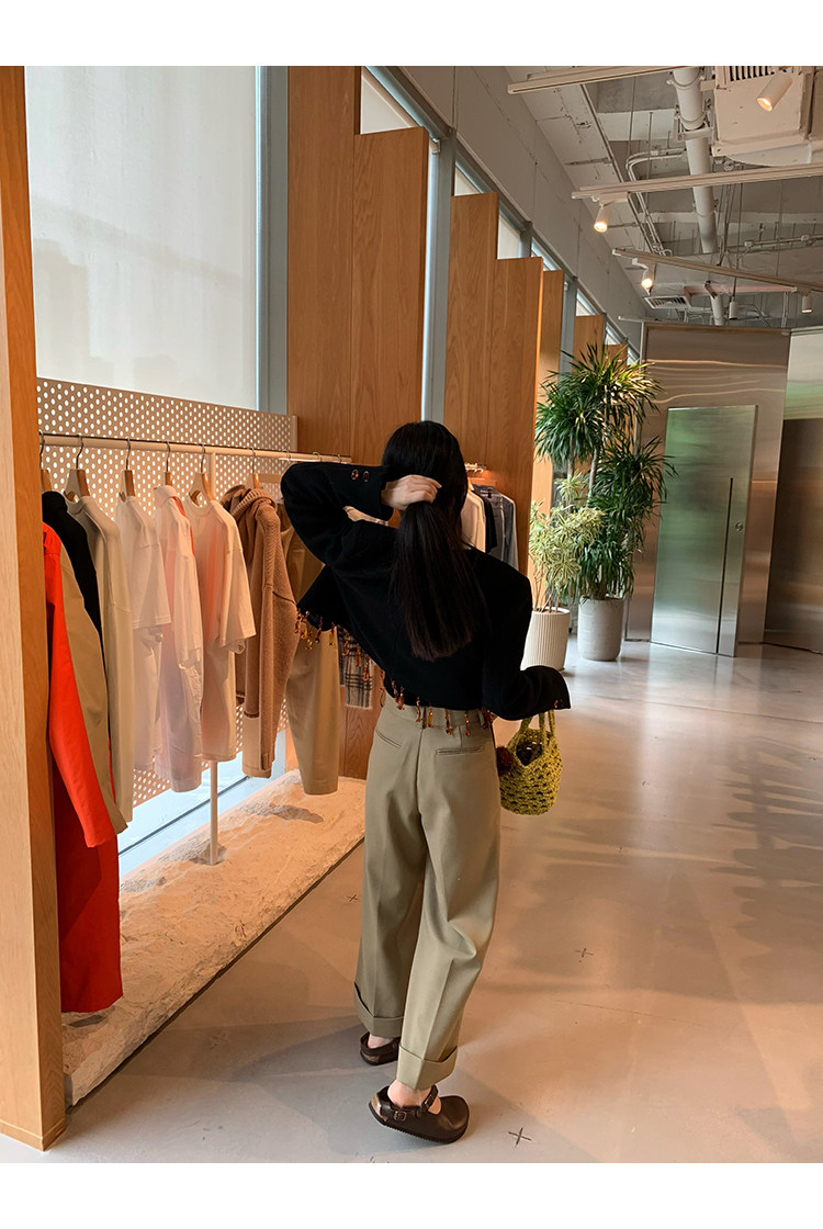 褲腳寬摺邊設計 幹練中帶著休閒感豐富層次
