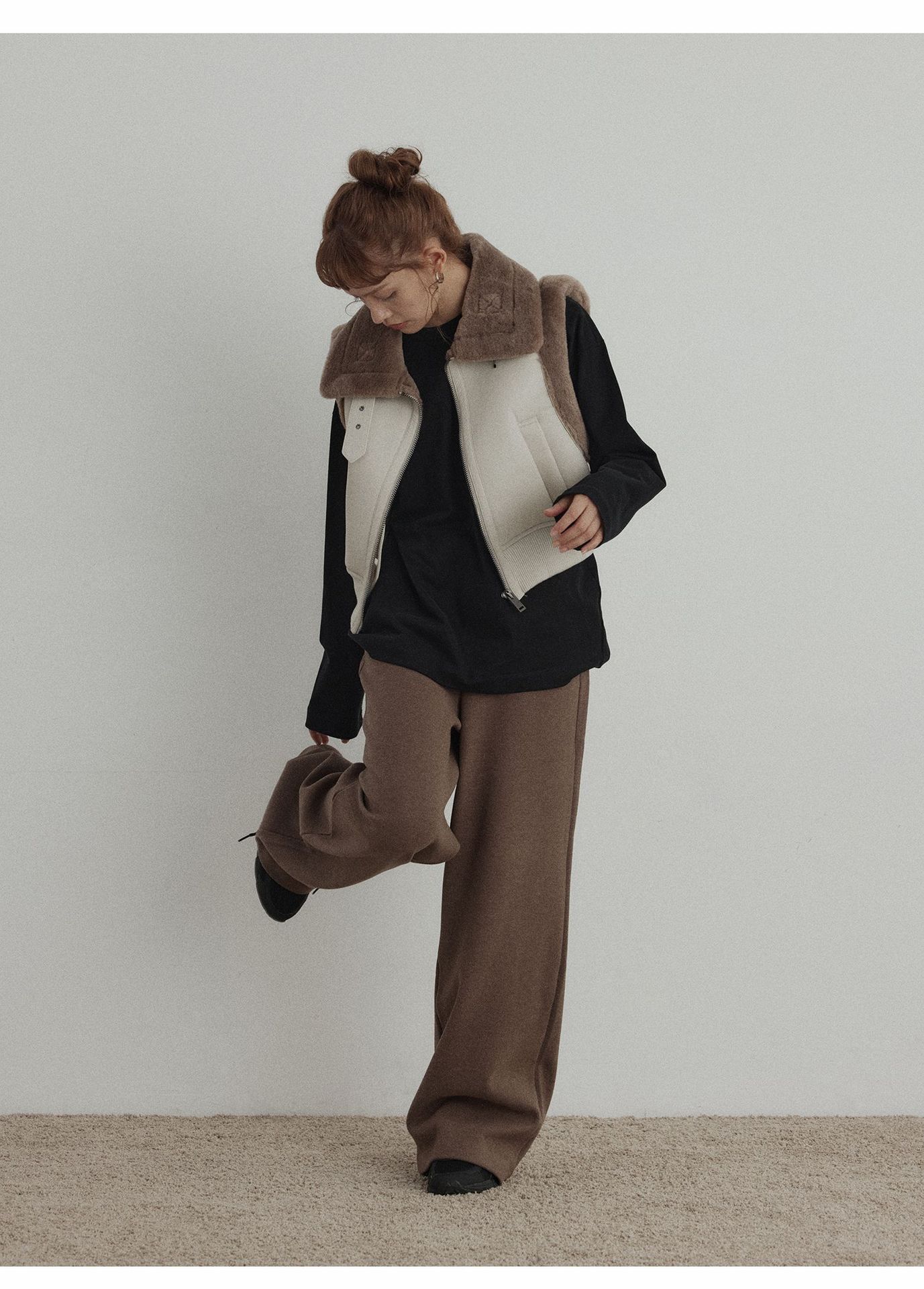 2023秋季重工質感新款.休閒翻領皮質羊羔毛絨短馬甲外套《設計師款100%保證品質佳》