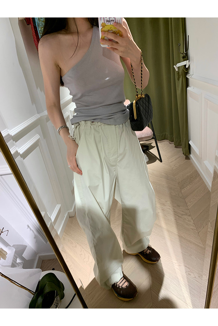 上身是錯落的肩線效果 可以巧妙的漏出鎖骨展現肩頸線條
