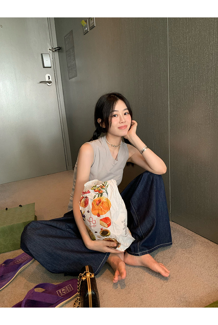 時髦疊穿高彈大象灰軟兩件套的這件很free的鬆弛感