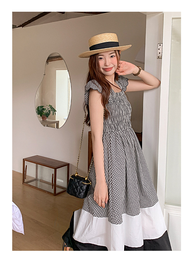 2023 新款.設計風飛飛袖皺褶黑白方領連衣裙《設計師款100%保證品質佳》